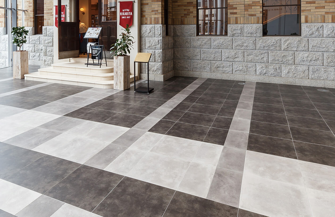 商業施設や鉄道施設向けタイル(ノンスリップタイル・点字タイル等)をクリヤマオリジナルブランド商品として、