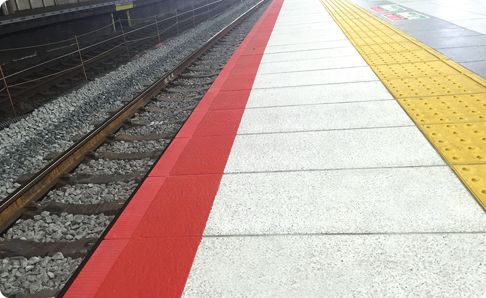 For many years, Kuriyama has sold highly wear-resistant braille tiles to help visually-impaired pedestrians, non-slip tiles to prevent falling accidents and injuries around public transportation and various other products which have successfully contributed to comprehensive safety at numerous buildings and facilities.