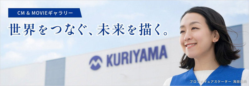 新しくなった「CM & Movieギャラリー」には、浅田さんが当社の北米拠点である「KURIYAMA of AMERICA」と「KURIYAMA CANADA」を訪れて撮影された新CM「北米事業篇」と「働きがい篇」を公開しております。